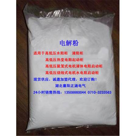 電解粉也稱水阻柜電解粉(俗稱電液粉,電阻粉,液阻粉,變阻粉,水電阻粉電解粉,啟動粉,變阻液,電解液,電阻液)又稱高壓水電阻軟起動柜電解粉。專用于水阻柜、液阻柜、液體電阻起動器中配制液體電阻。 液體電阻...