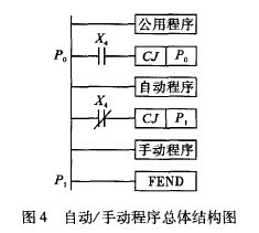 PLC控制的自動/手動程序總體結構如圖4所示。