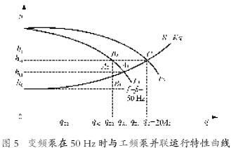 2.3.2 變頻泵與工頻泵并聯運行時的特點
