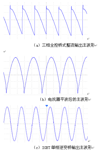 圖3 IGBT中頻電源整流、平波和輸出三大主波形圖